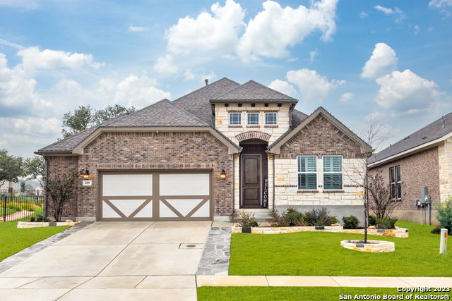 This lovely 4-bedroom, 3-bathroom modern home is perfectly situated in BOERNE. Exterior includes patio, front porch, and back porch. A warm welcome that includes a stately entryway, hardwoods, an open layout, natural light and stylish fixtures both, neutral decor, and vaulted ceilings. Stylish chef's kitchen, with natural light, fresh updates, premium appliances, and attractive island layout. The well-appointed main-floor master bedroom includes a walk-in closet, sitting space, and private bath with step-in shower. The other three bedrooms, situated on the main floor for maximum convenience, are unique and designed with plenty of wardrobe storage. Attached two-car garage.