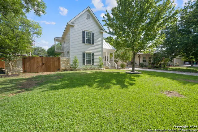 Nestled in the heart of downtown Boerne, this exquisite home exudes charm and attention to detail. Walkable to all of the popular Boerne attractions, this home is an active person's dream. From the farmhouse aesthetic, to the plantation shutters and stunning hardwood flooring, this home radiates charm and warmth throughout. Wonderfully maintained and updated, this home showcases modern finishes, updated interior and exterior spaces, and a flex space above the garage. The kitchen is easily the heart of the home, complete with built-in shelving, stainless steel appliances, and the perfect view of the living room and dining area. Retreat to your downstairs primary bedroom boasting a spacious walk-in closet and luxurious ensuite with high end finishes throughout. One secondary bedroom opens onto a quaint balcony, offering a serene retreat or a delightful space to read. The backyard is an entertainer's dream, complete with an extended covered patio and ample yard space to make your vision a reality. Complementing the main residence is a detached repurposed garage which boasts the highest quality NewAge wall mount cabinets and NewAge Stone Composite flooring perfect for a gym or high end man cave. Two mini split A.C units and insulated garage doors maintain the perfect temperature year round. Above the garage you have a flex space that could be used as an office, guest quarters, game room or some combination of all three. Don't miss the chance to make this your next Hill Country dream home!