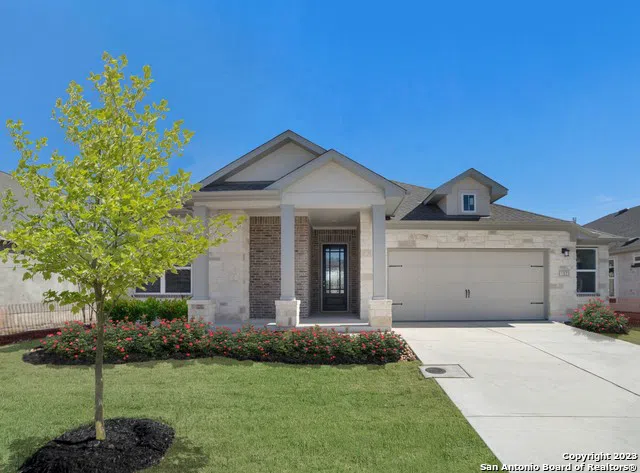 ** MOVE-IN READY! ** This is an impressive one-story ranch style home with a front porch and covered back patio wrapped in stone and brick masonry. 132 Maravillas features a gallery entry, flex room that can be used as a game room, craft room or gym! Family room opens to a grand kitchen and dining area with tons of natural light! Elegant master suite host custom cabinets with a window bump out, walk-in shower and dual vanity. Three additional bedrooms and two bathrooms are featured in front of home off gallery entry. Calm neutral tones decorate this home. Call us today to book your tour! Esperanza was voted "Best community overall" Esperanza community amenities include Resort style pool, kids splash pad, lazy river, 24 hr fitness center, sand volleyball courts, 2 dog parks and the Roca Loca Lawn area for food trucks, live bands where community gatherings are hosted.
